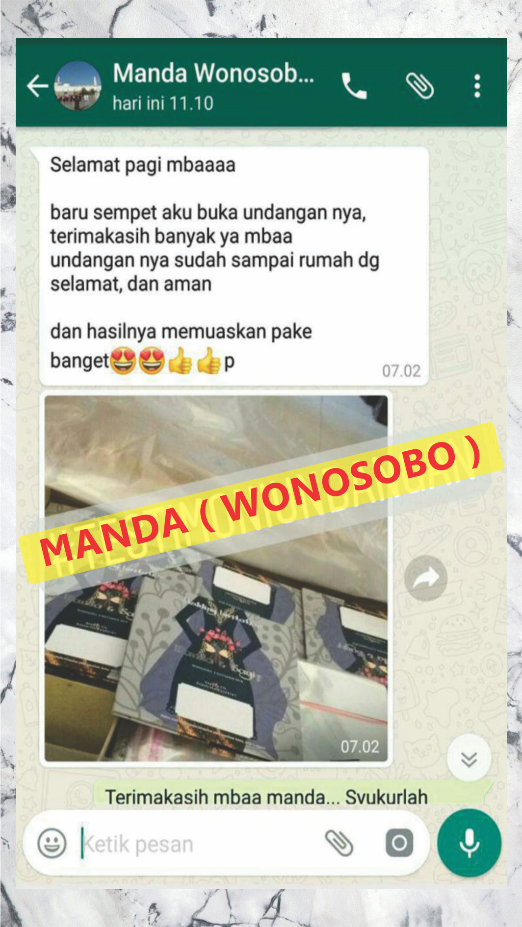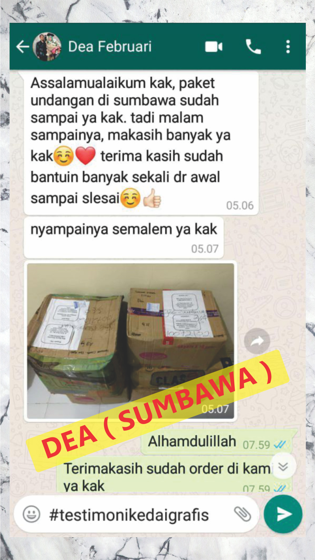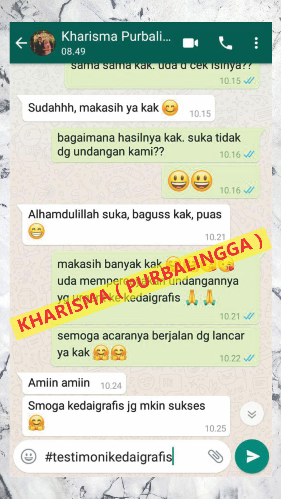 Ini adalah beberapa testimoni klien dari ribuan testimoni klien yang sudah pesan cetakan baik itu undangan, kemasan dan cetakan lainnya.