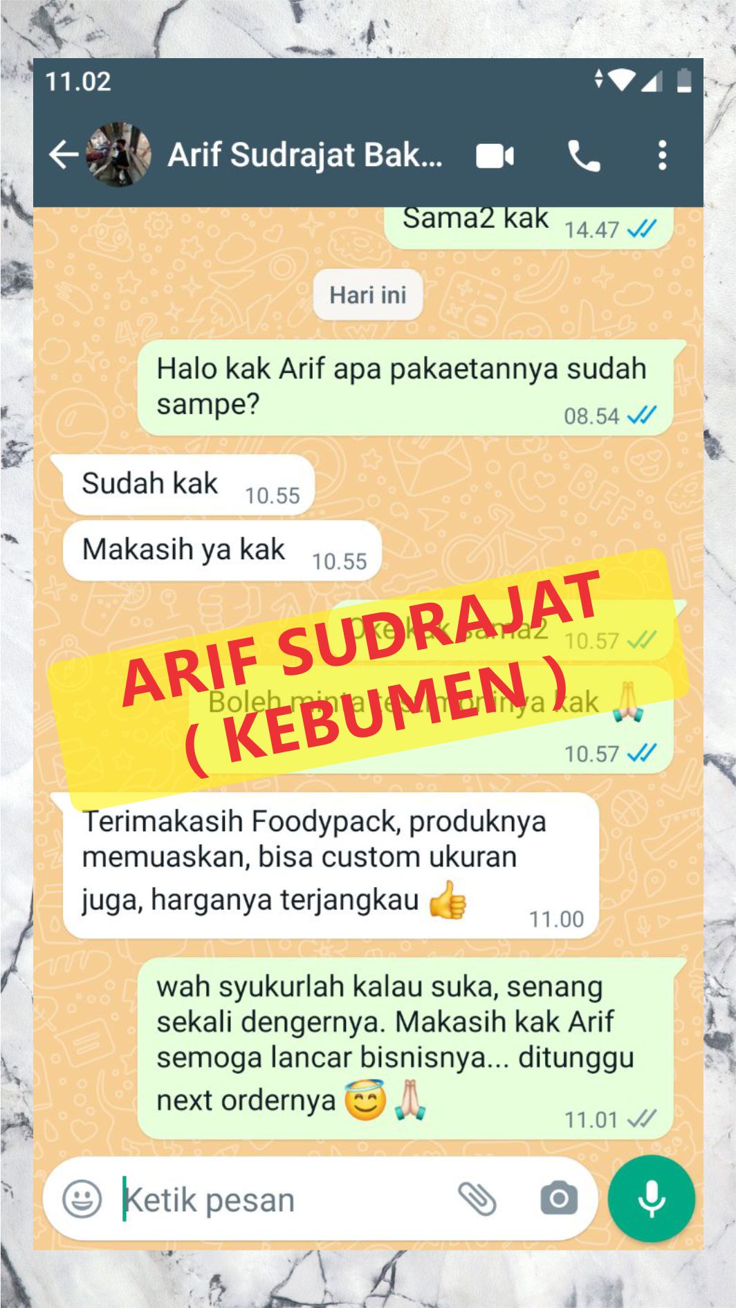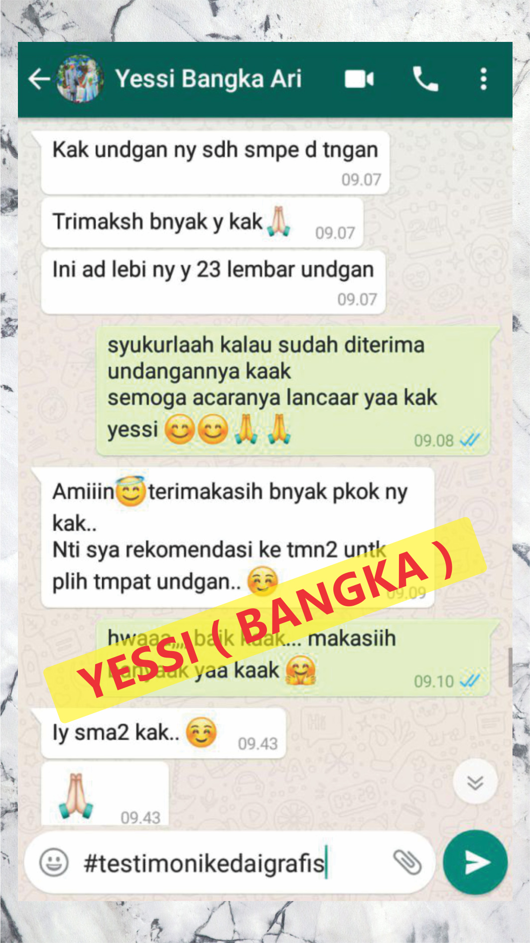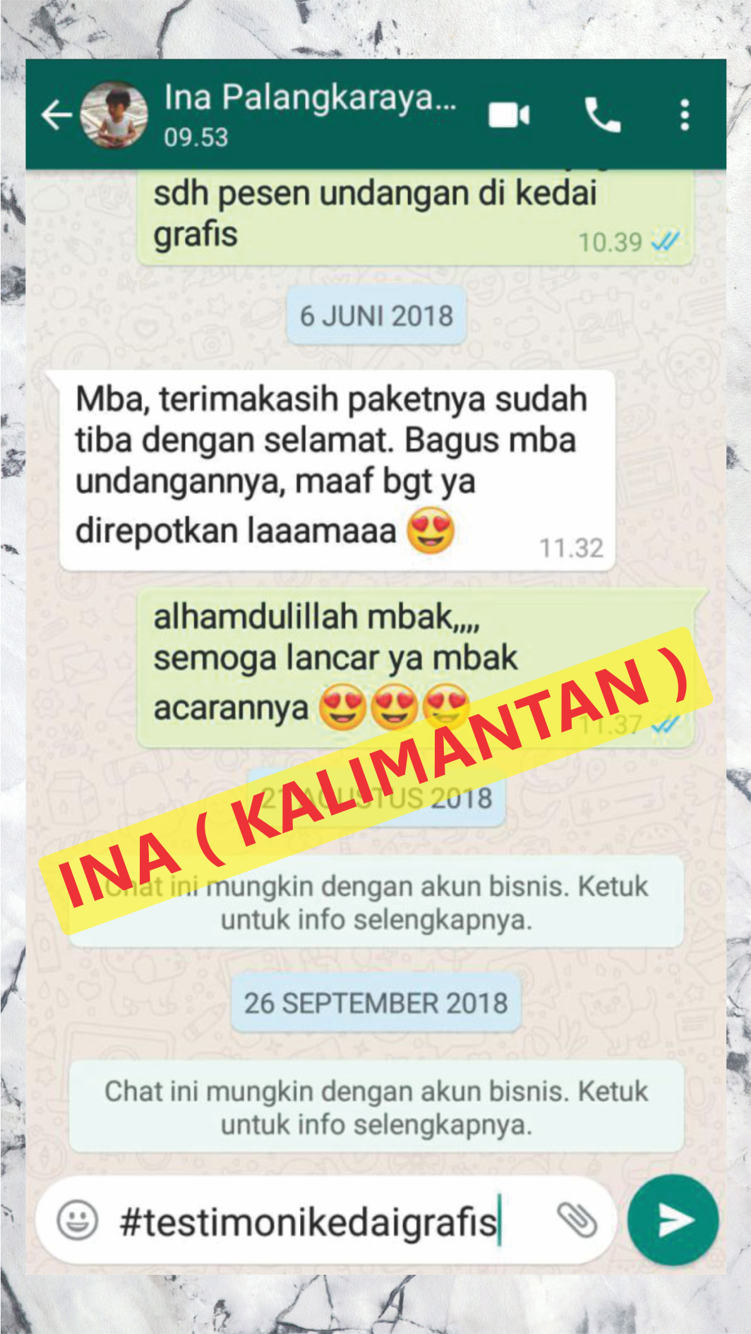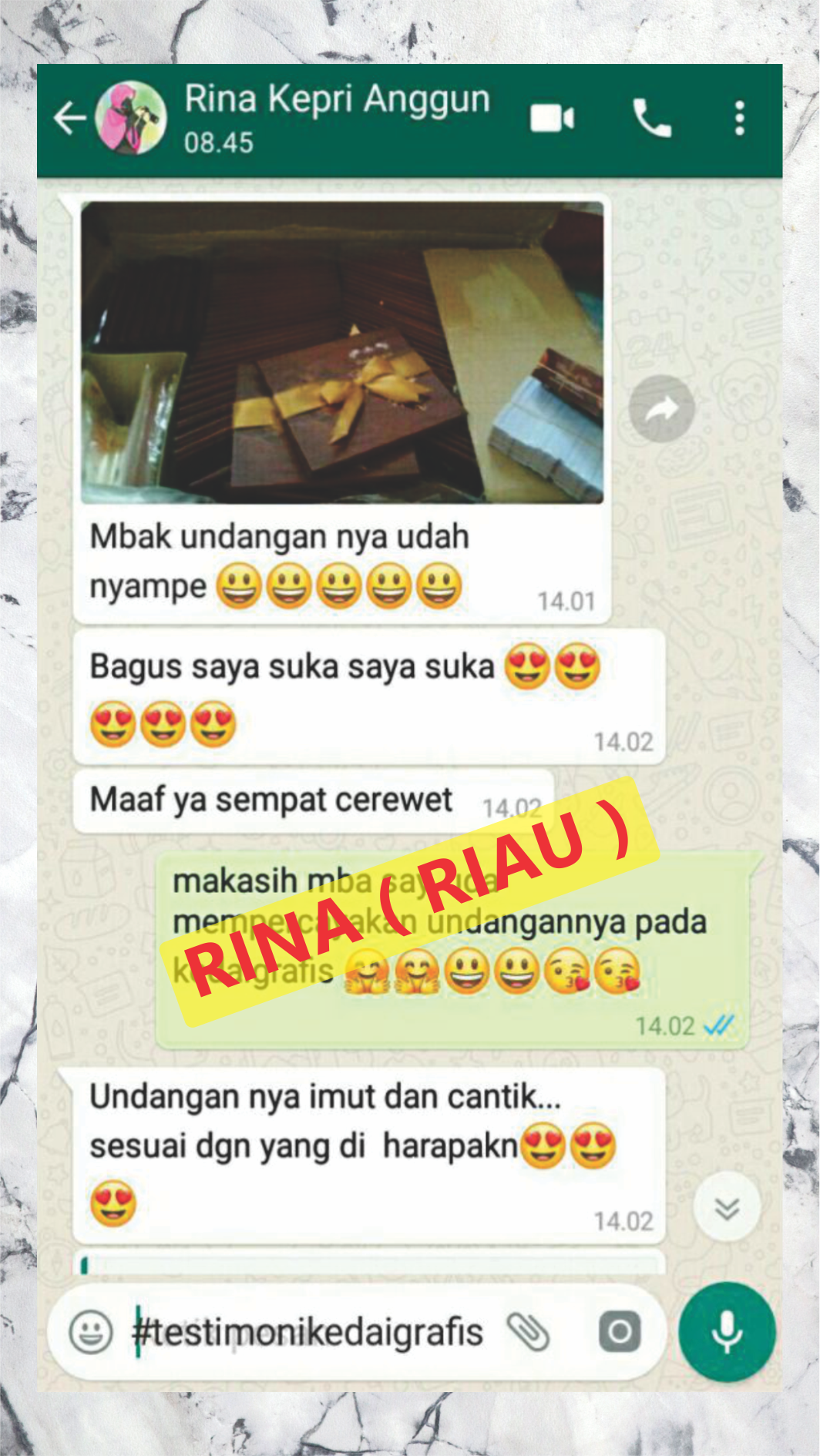 Ini adalah beberapa testimoni klien dari ribuan testimoni klien yang sudah pesan cetakan baik itu undangan, kemasan dan cetakan lainnya.